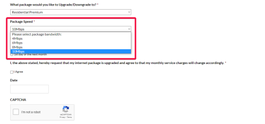 • After you have filled out the necessary details you can select the package of your choosing by clicking/pressing on the Package menu (Img. 3), afterwards you can select the connection speed of your choosing your package speed (Img. 4).