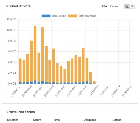 Here you will find the options to view your monthly usage stats. Selecting Internet will provide you with a monthly view of your daily internet usage (Img. 4) and selecting Voice will provide you with your VOIP services usage stats (Img. 5).
