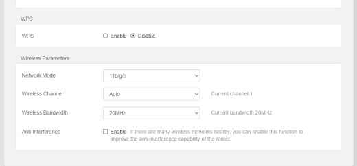 • Next, navigate to the Wireless Settings window by selecting the Wireless Settings tab on the left pane of the screen, scroll down to Wireless Parameters (Img. 3) and change the Wireless Bandwidth to 20MHz. Press OK.